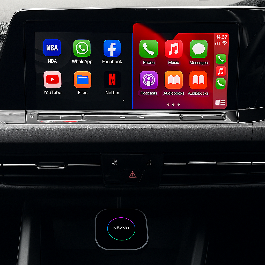 Easy! Just plug NEXVU-S into your cars USB port used for CarPlay or Android Auto and our interface loads up on to your screen using your vehicles existing CarPlay system.